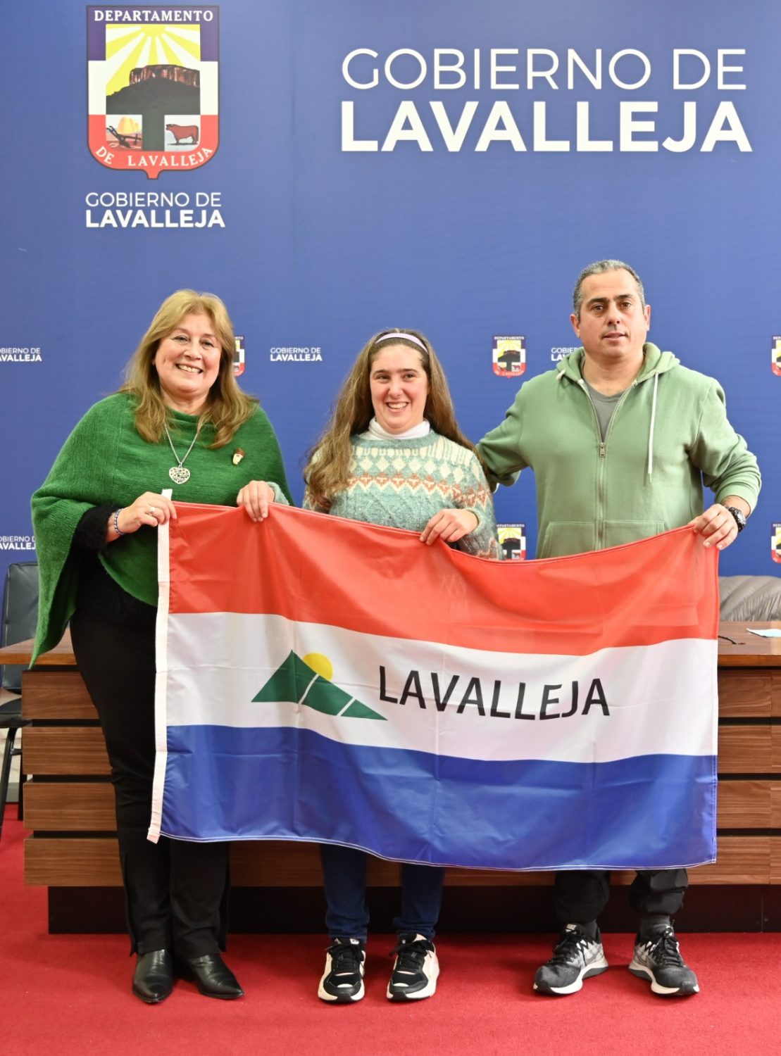 Lucía Silva, atleta de deporte adaptado recibió por parte del gobierno departamental la bandera de Lavalleja por la participación en actividades deportivas que participará Lucía. La Secretaria General de la Intendencia Lidia Araujo, el Director de Deportes de la Intendencia Departamental de Lavalleja, profesor Neris Villalba, y Lucía Silva, atleta de deporte adaptado y quien estará participando en natación adaptada fueron los encargados de estar en la mesa de la mencionada conferencia.
